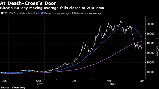 同时,随着比特币价格下跌,导致50日线正在接近200日均线。如果跌破,则形成名为“死亡交叉”的看跌形态。比特币上次出现死亡交叉是在2019年11月,其价格在随后一个月下跌约5%。