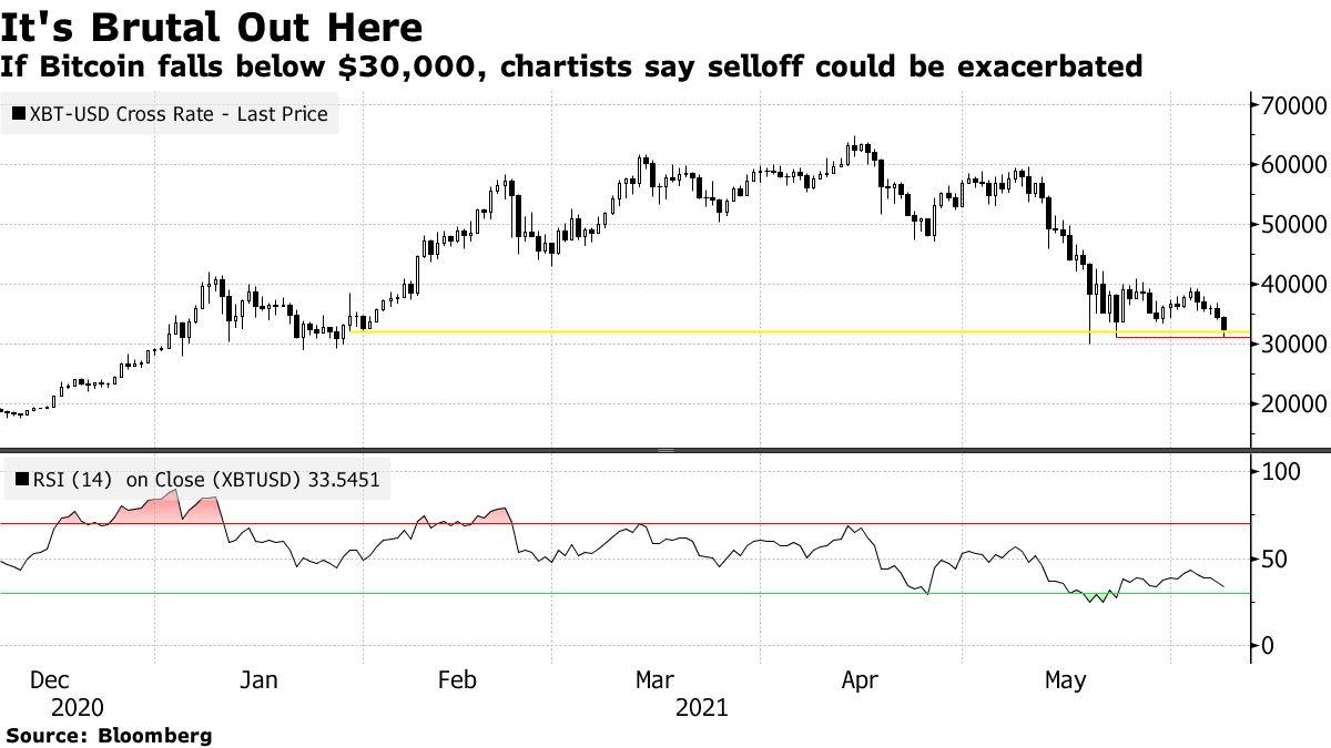Oanda的高级市场分析师杰弗里·哈雷(Jeffrey Halley)表示,跌破30000美元可能会导致“再次投降”。Evercore ISI的Rich Ross认为将测试29000美元左右的支撑位。