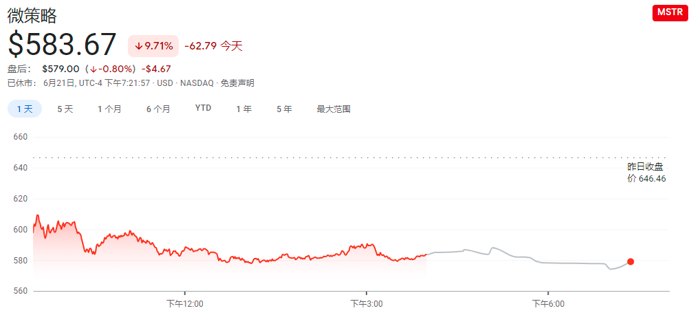MicroStrategy的股价在过去一年中上涨了近400%,这在很大程度上要归功于比特币的上涨。不过,该股目前已较2月份的峰值下跌54%,周一又重挫了9.8%,与比特币的暴跌相呼应。