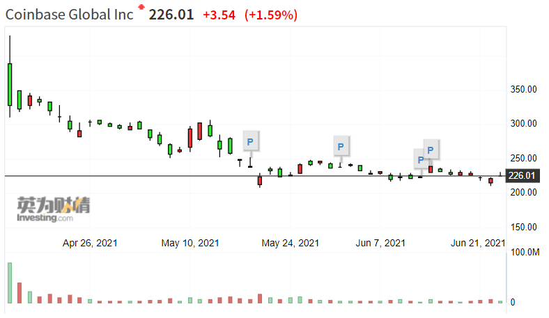 Coinbase最初以每股近350美元的价格开始交易,但自上市以来,它已跌至222美元,较最高点下跌了近35%。