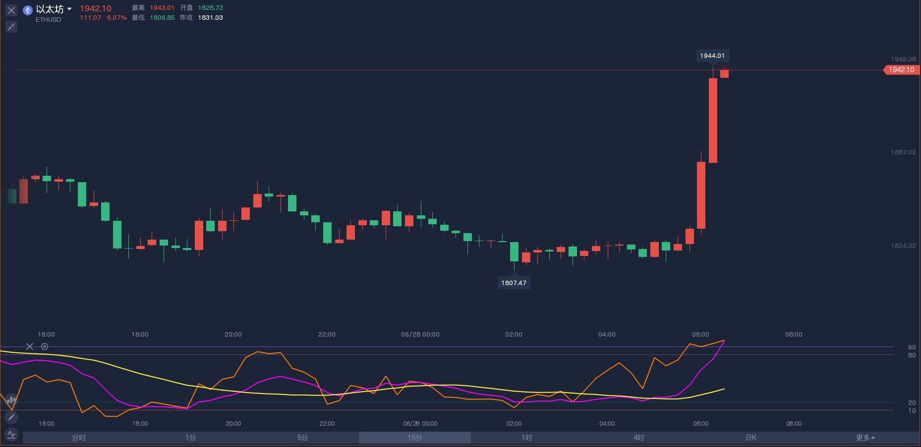 周六(6月26日)早间比特币失守31000美元/枚,日内跌超2%,随后逐渐爬升。今日比特币涨幅扩大,收复部分失地,带动以太坊站上1900美元/枚,日内涨超5%。